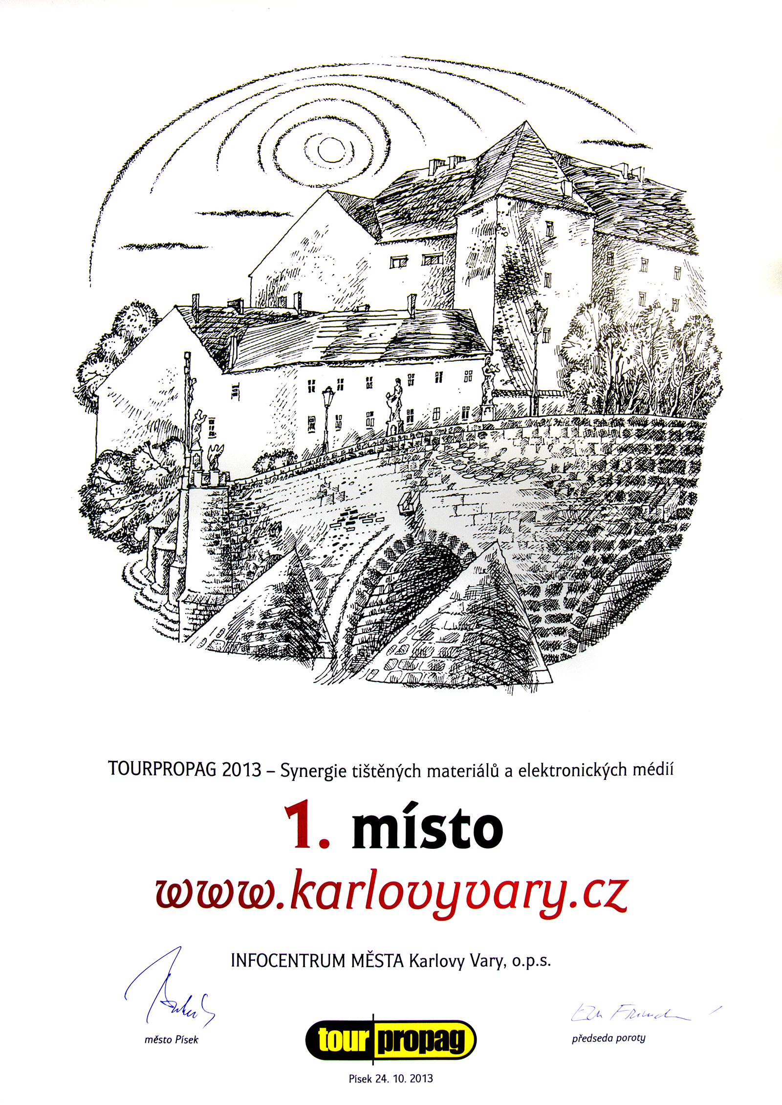 Infocentrum města Karlovy Vary o.p.s. získalo ocenění v kategorii Synergie tiskových materiálů a elektronických médií za turistický portál www.karlovyvary.cz na přehlídce propagačních materiálů Tourpropag 2013.
