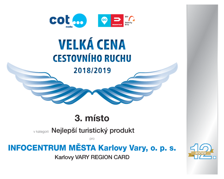 Infocentrum města Karlovy Vary o.p.s. získalo ocenění Velké ceny cestovního ruchu 2018/2019 za projekt turistické karty Karlovy VARY REGION CARD.