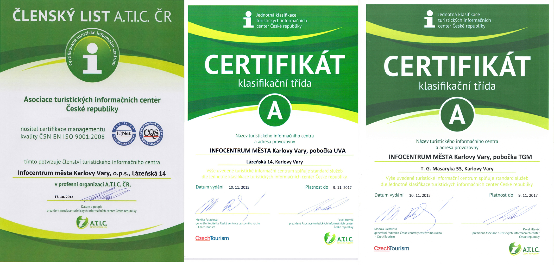 Information center of Karlovy Vary o.p.s. is a member of the Association of Tourist Information Centres of the Czech Republic. Recently, we have achieved a Class A classification for both of our branches.