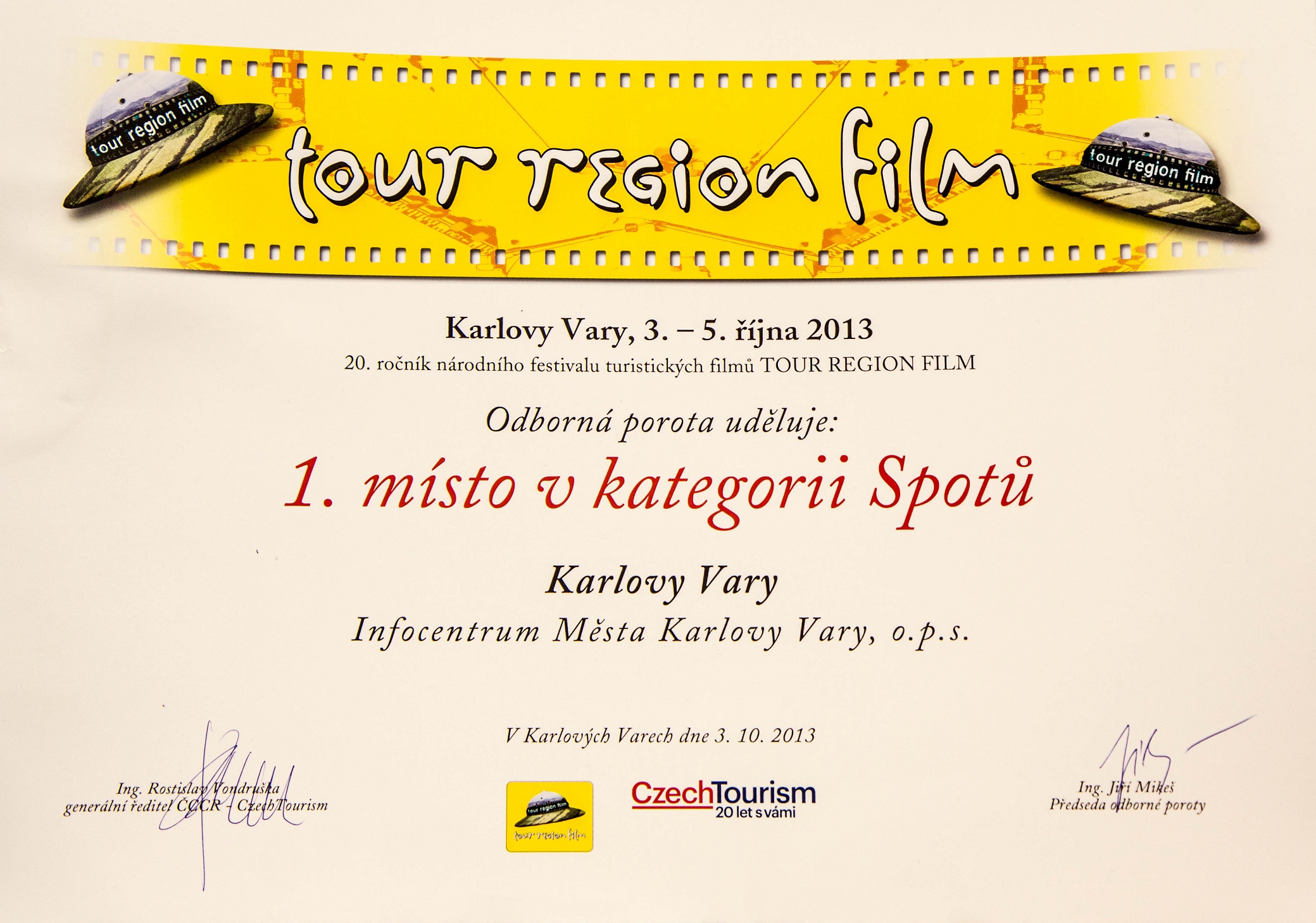 Information center of Karlovy Vary o.p.s. was awarded for video Meet Karlovy Vary on the Tour Region Film Festival 2013.