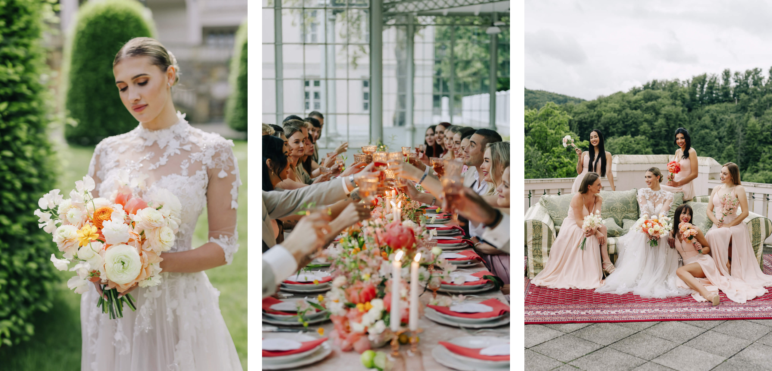 - Von prunkvollen Sälen über intime Salons bis zu Gärten und Terrassen mit Stadtblick — jede Hochzeit kann hier ihren ganz eigenen Charakter haben.
