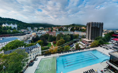 Современный отельный комплекс и курортный санаторий «Термал» был построен в 1967 – 1976 годах по проекту чешских архитекторов, супругов Веры и Владимира Махониных. К доминантному высотному зданию отеля пристроен конгресс-центр с большими залами для проведения фестивалей, конгрессов, симпозиумов, концертов и ряда других культурных мероприятий. В состав отеля также входит уникальный открытый подогреваемый плавательный бассейн, наполняемый термальной водой из Гейзера. Ежегодно «Термал» становится центром Международного кинофестиваля в Карловых Варах.Больше
