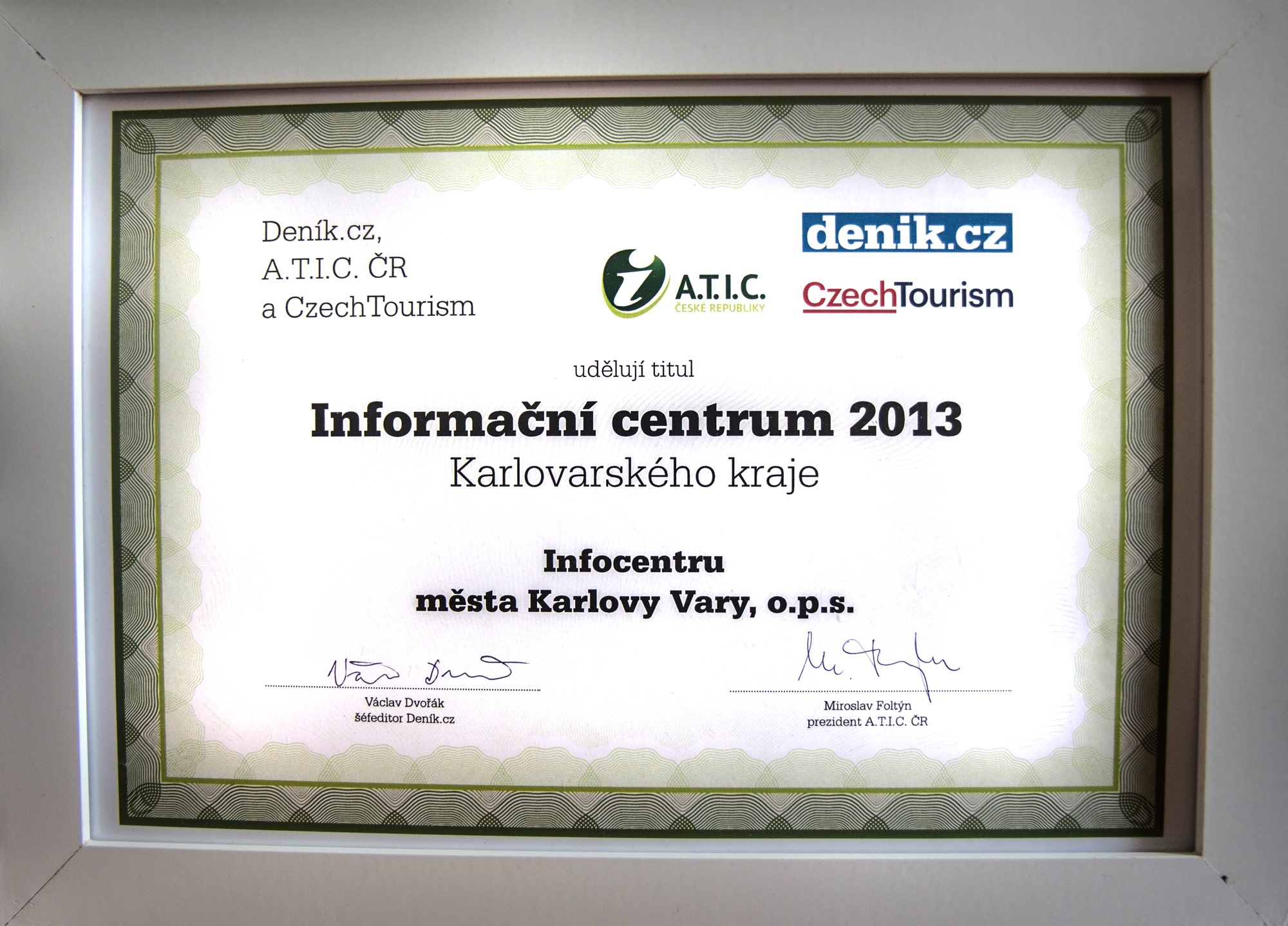 Информационный центр Карловых Варах выиграл 2-е место в конкурсе лучших сайтов ТОП 100 (2013) в категории туризма.