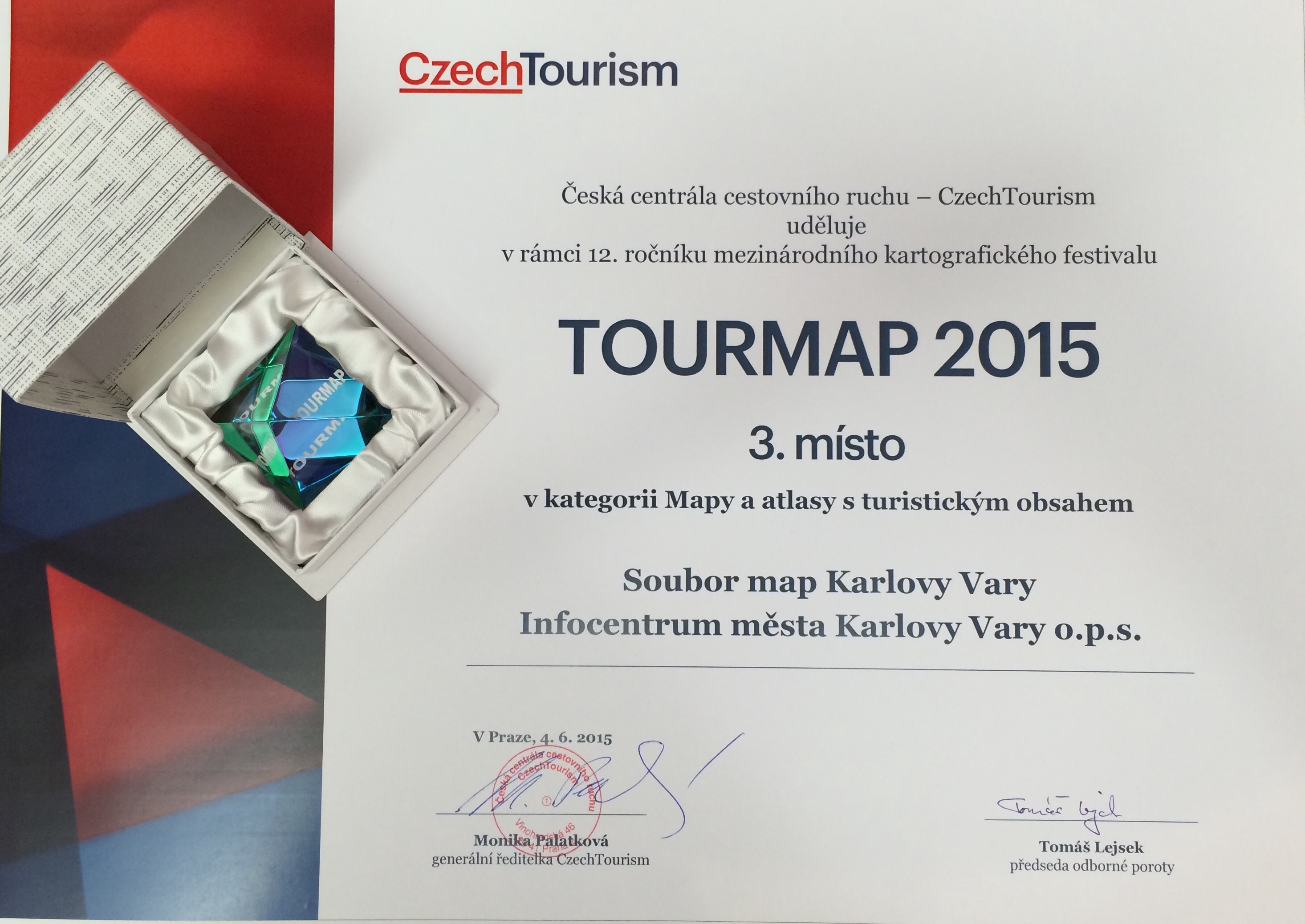 Infocentrum města Karlovy Vary o.p.s. získalo na festivalu TOURMAP ocenění v kategorii mapy a atlasy s turistickým obsahem.
